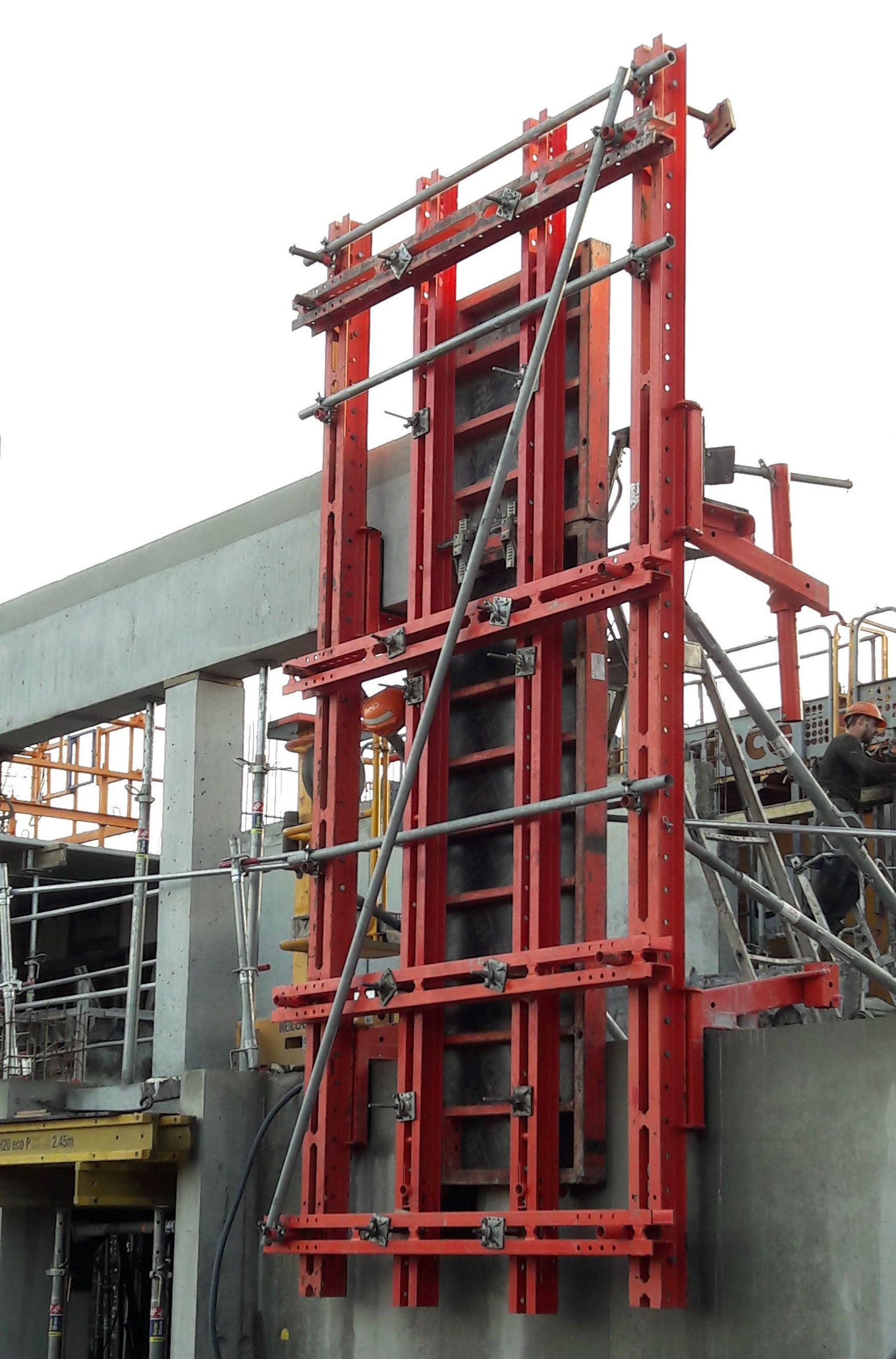 Da die FTF zum Großteil aus Komponenten der VARIO GT 24 Träger-Wandschalung und des SRU Stahlriegelsystem besteht, kann sie flexibel an spezielle Bauwerksgeometrien angepasst werden.