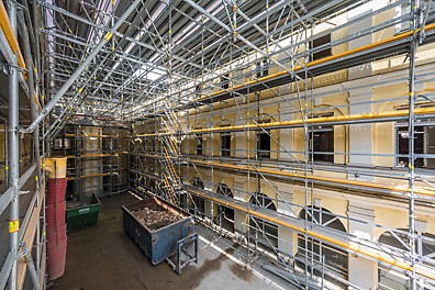 Dachfang, Passantenschutz, Schutzdach, Überbrückungen, Auskragungen, Abstützungen, Treppen, Konsolen, Bekleidung