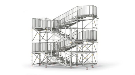 Die PERI UP Gerüsttreppe für den öffentlichen Bereich kann flexibel an die Anzahl der Benutzer, an Geometrie und Lasten angepasst werden. -
