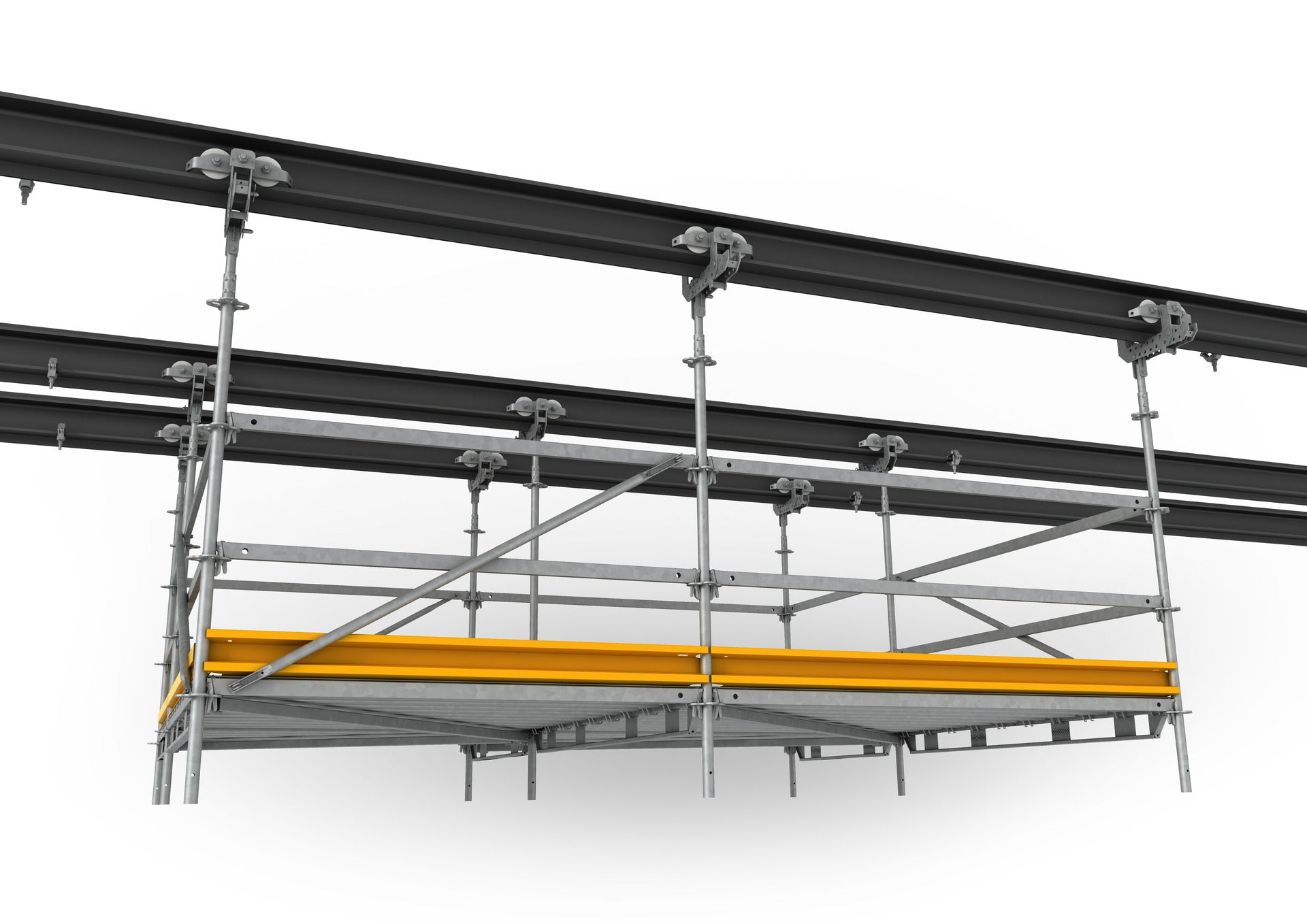 Das Gerüst lässt sich einfach an variable Stahlträgerabstände anpassen.