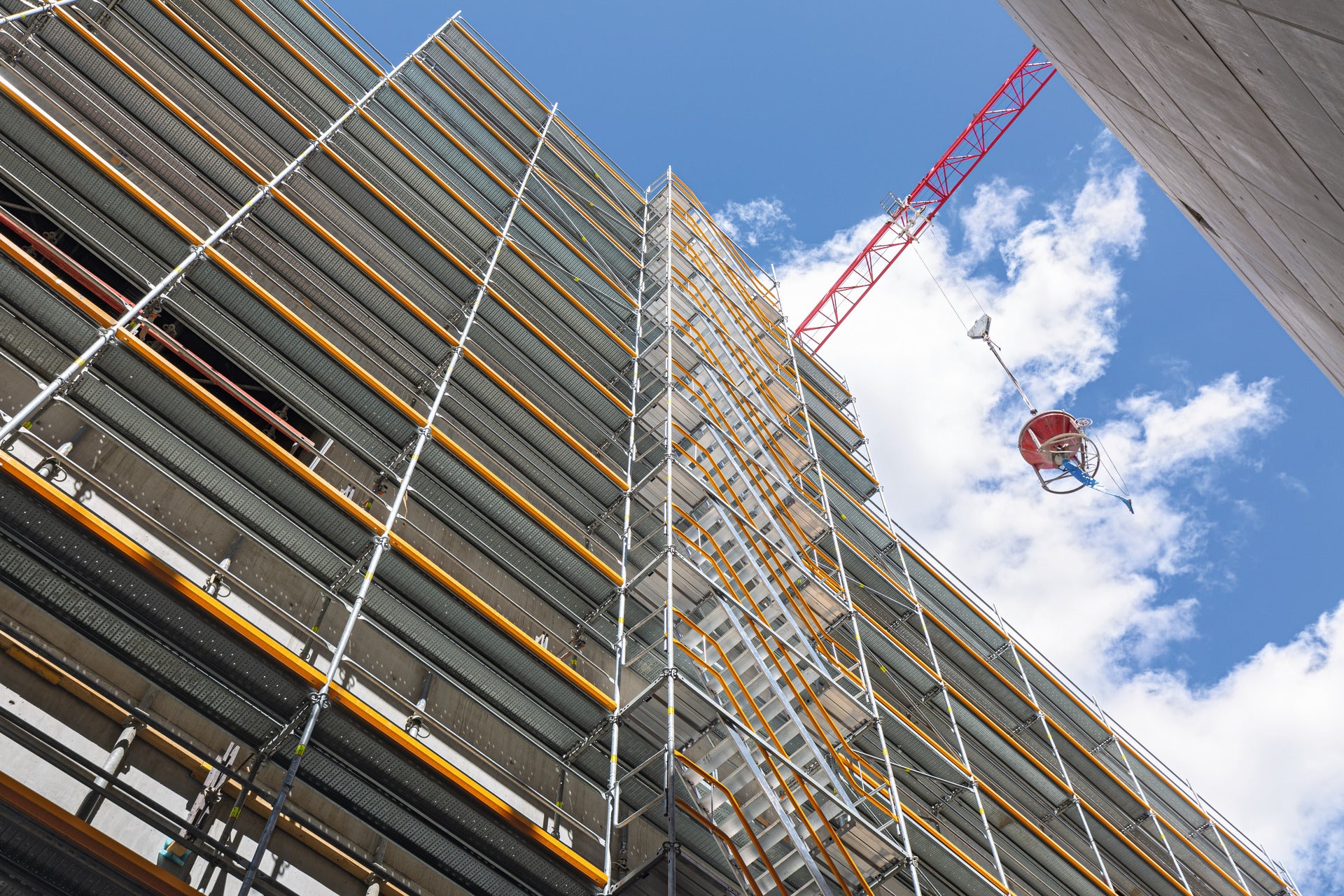 Die Treppe in 67 cm Breite passt sich nahtlos an das PERI UP Fassadengerüst an. -