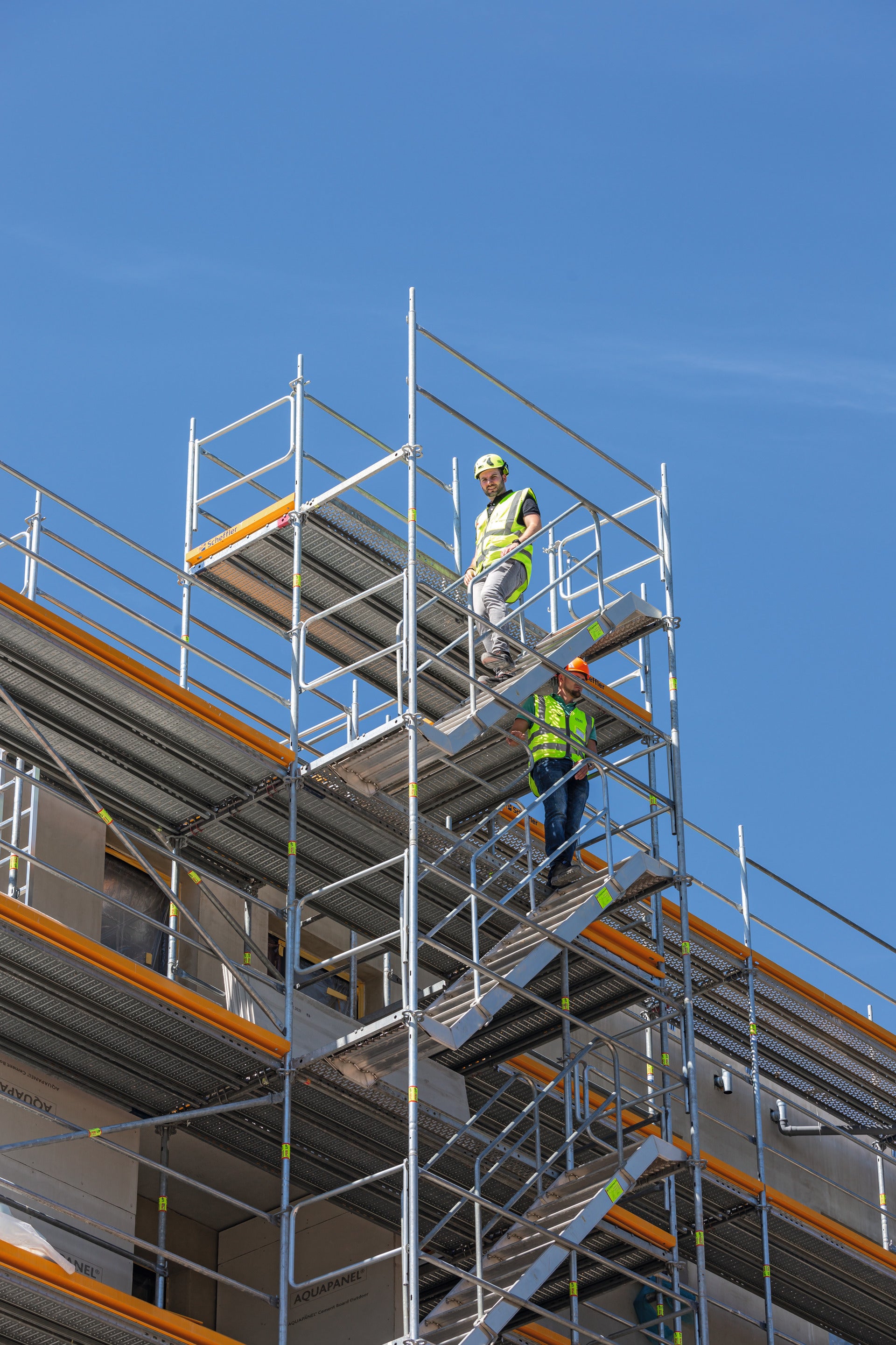 Die Gerüsttreppe ist der ideale Zugang zu höher gelegenen Arbeitsplätzen. -