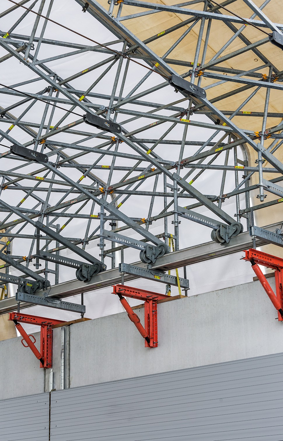 PERI UP Wetterschutzdach für große Spannweiten im Einsatz