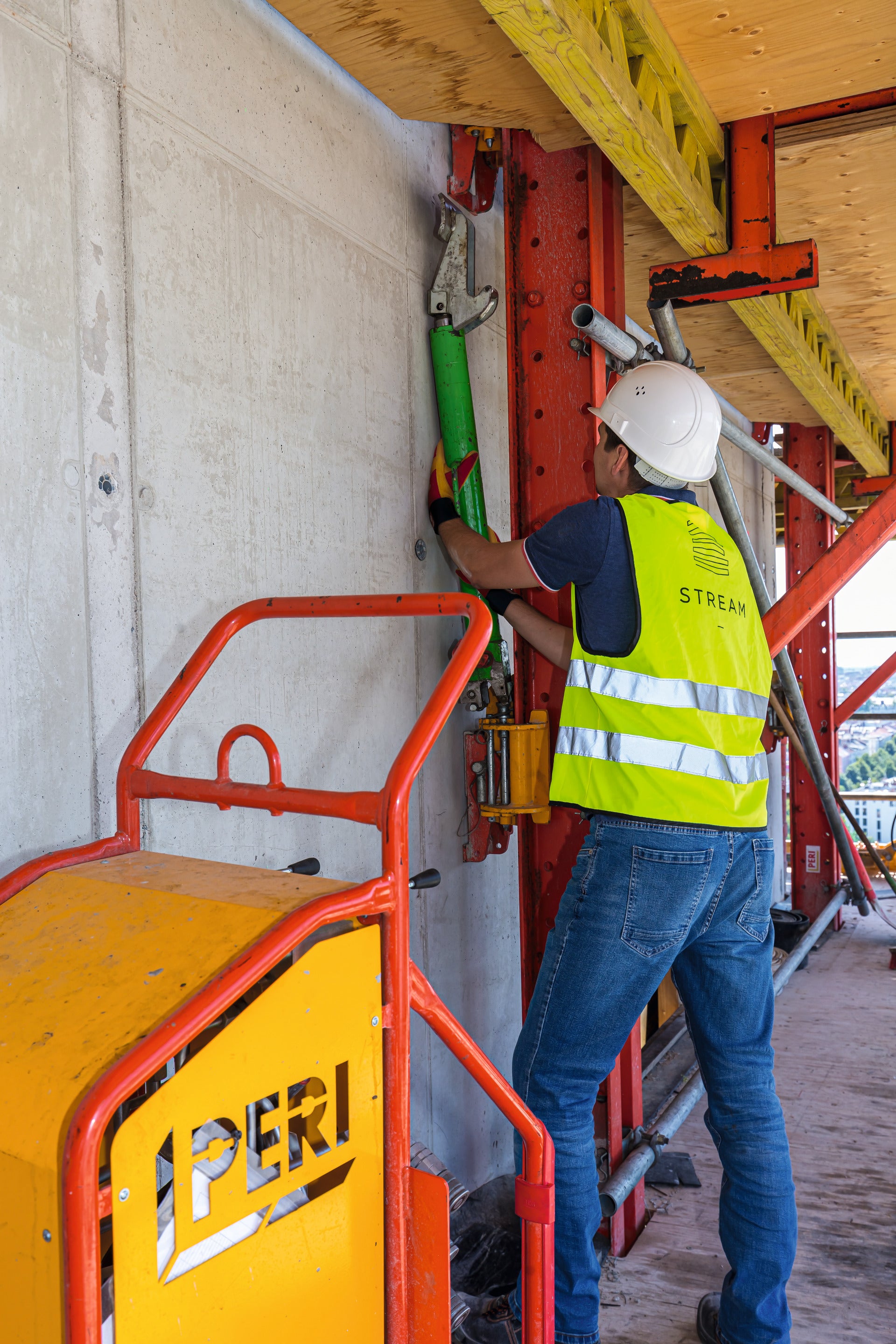 RCS SchienenklettersystemPERI RCS bündelt die Vorteile verschiedener Klettersysteme in einem Baukasten, der die unkomplizierte Anpassung an baustellenspezifische Anforderungen möglich macht. Schienengeführtes Klettern erfolgt auch bei Wind schnell und sicher per Kran oder optional kranunabhängig mit mobiler Kletterhydraulik.