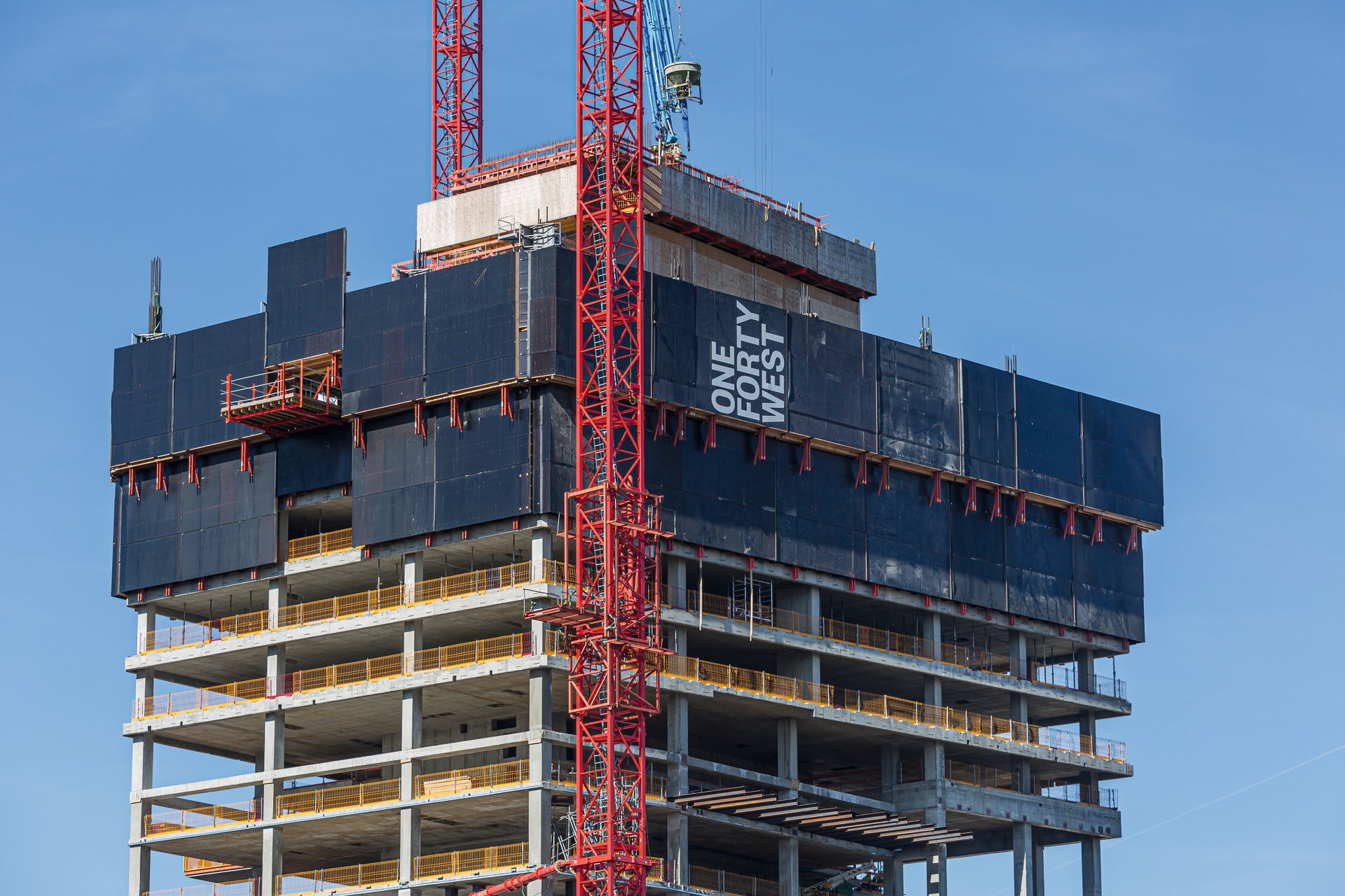 Kletterschutzwand und Absturzsicherung RCS PEinhausung und Absturzsicherung zur lückenlosen Umschließung der Rohbaugeschosse