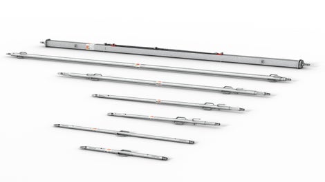 Auszugslängen: 1,30 m - 2,10 m (RS 210) | 2,30 m - 2,60 m (RS 260) | 1,90 m - 3,00 m (RS 300) | 2,80 m - 4,50 m (RS 450) | 4,30 m - 6,50 m (RS 650) | 6,40 m - 10,00 m (RS 1000) | 6,40 m - 14,00 m (RS 1400) | Grobeinstellung im 10-cm-Raster