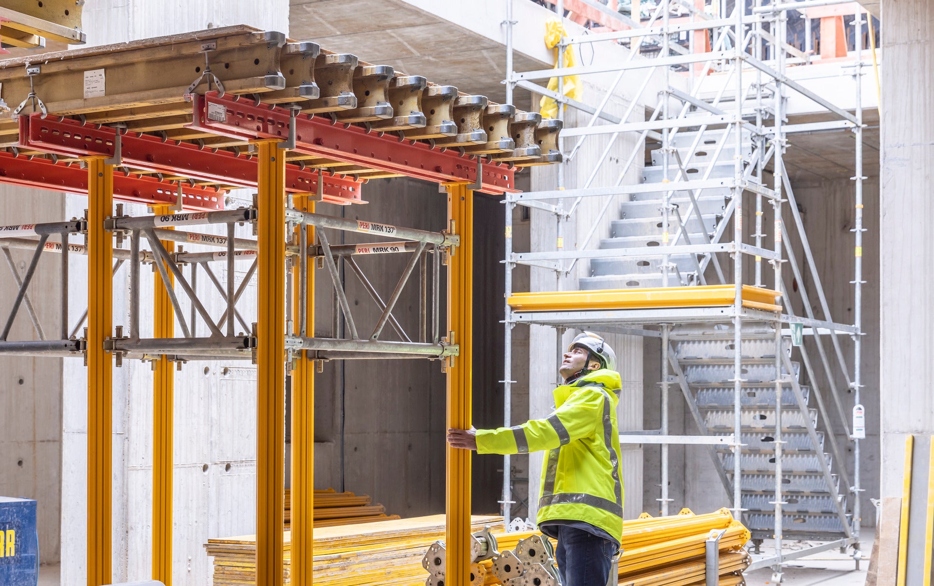 Vertikales Umsetzen der Tische Von Stockwerk zu Stockwerk können die Tische mit den PERI Umsetzgabeln bewegt werden. Sie ermöglichen dank des Ausgleichmechanismus eine horizontale Position der Gabel sowohl im Leer- als auch im belasteten Zustand. Horizontales Verfahren der Tische Zum Umsetzen der Tische können der PERI Tischumsetzwagen oder der PERI Tischlift eingesetzt werden.