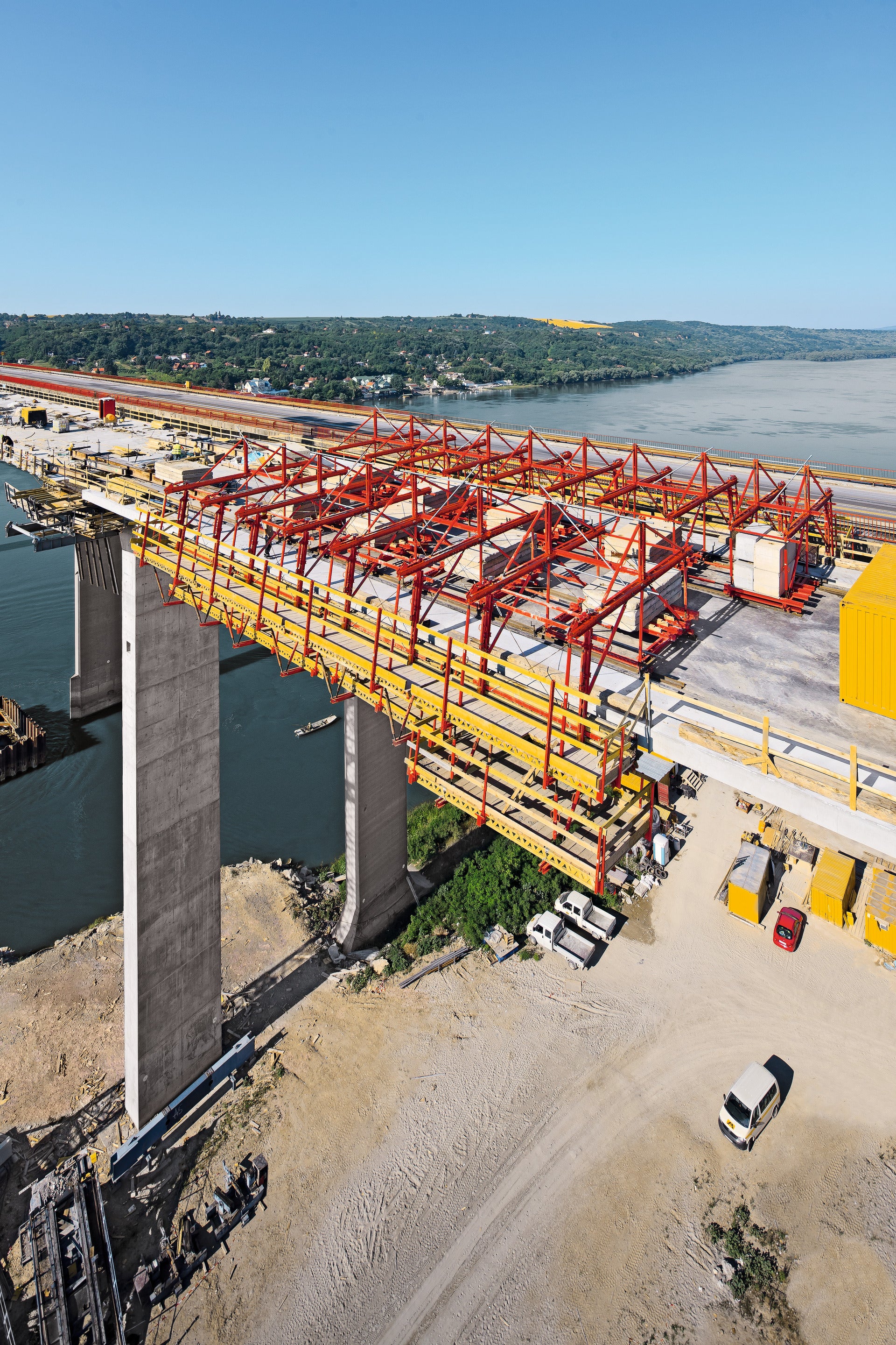 Der fließende Verkehr unterhalb der Brücke wird nicht beeinträchtigt. Bei der Betonage stellen sich nur geringe Verformungen ein.
