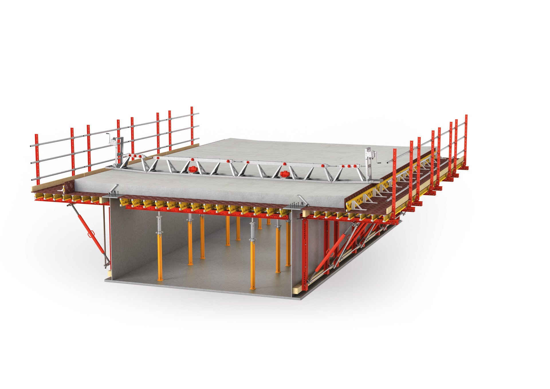 Die Anbringung der Kragarmkonsole ist ohne Durchdringung der Fahrbahnplatte möglich.